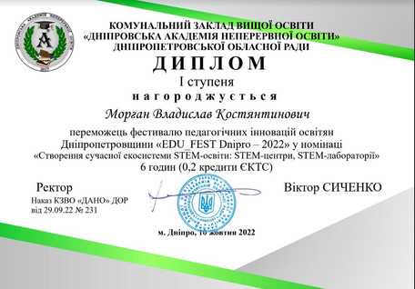 03 листопада 2022 року відбулась методична студія обласного фестивалю педагогічної творчості освітян Дніпропетровщини «EDU_FEST Dnipro – 2022» за темою: «Медіа-інформаційні технології та STEM-освіта у Новій Українській Школі».