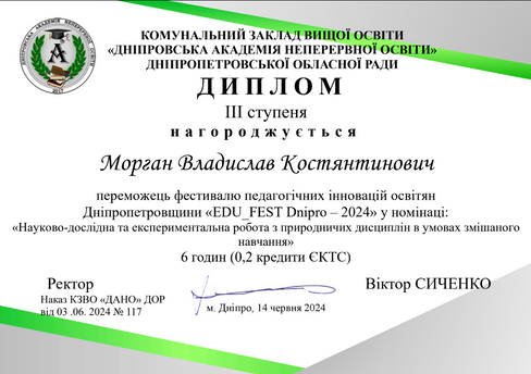 Також я став переможцем у номінації «Науково-дослідна та експериментальна робота з природничих дисциплін в умовах змішаного навчання» та учасником номінації «Дослідницько-пошукова діяльність учнів як невід’ємна складова освітнього процесу з географії». 🌍🧭